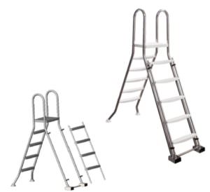 - Edelstahl Hochbecken Sicherheitsleiter, mit vorderen abnehmbaren Einstiegsstufen. Belastbar bis 150 kg. (nur in V2A lieferbar).
